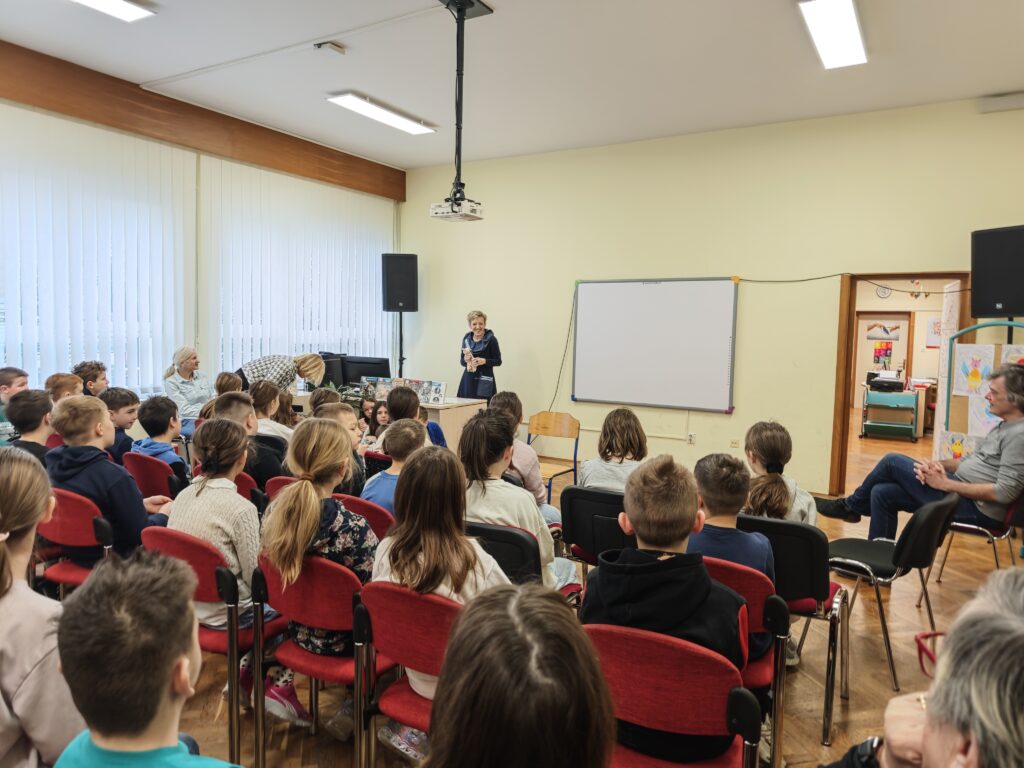 Učenici trećih razreda Osnovne škole Donja Stubica dočekali su književnicu Nadu Mihaljević (koja je svojevremeno pohađala njihovu školu i ostala je vezana za taj kraj iako je u međuvremenu odselila) potpuno spremni. Svi su čitali roman Anđeo plišanih igračaka te su izveli niz malih igrokaza dramatizirajući pojedine ulomke.