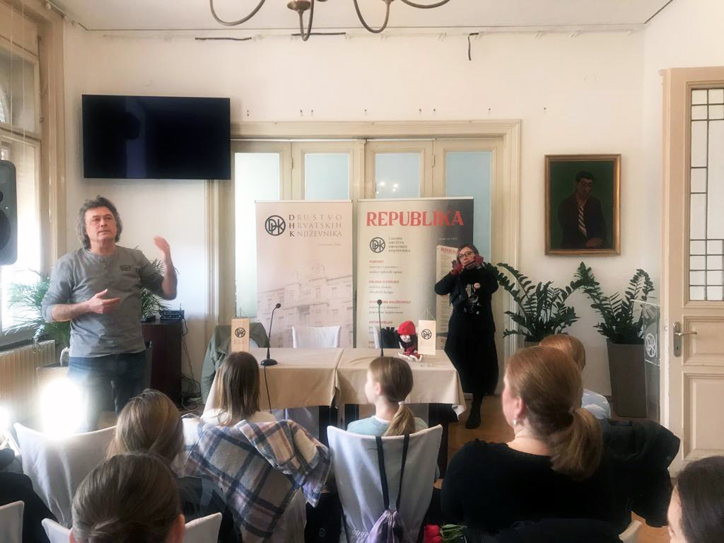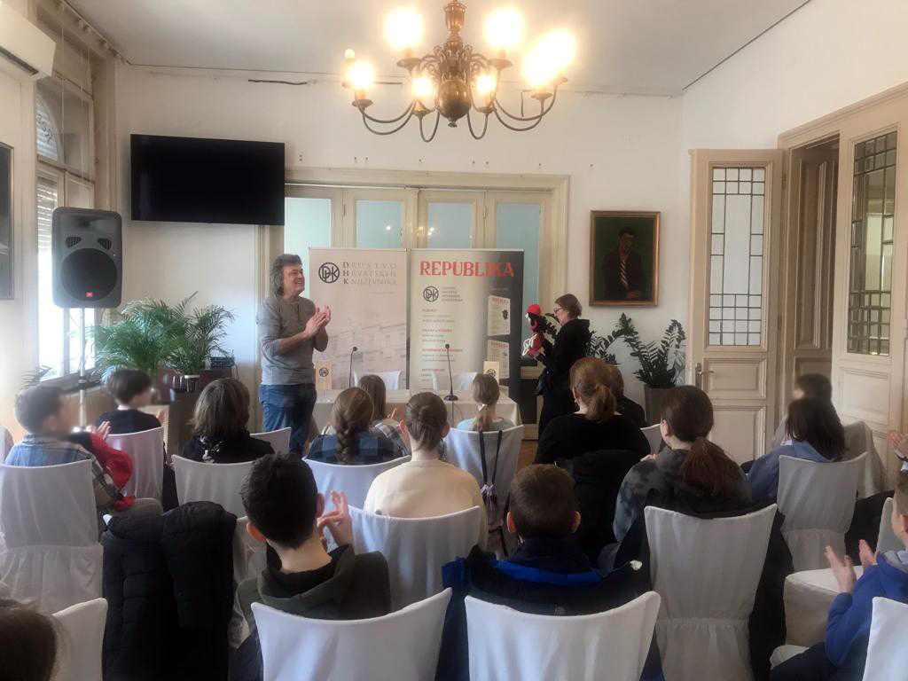 U prostorijama DHK učenike četvrtih razreda Osnovne škole Ksavera Šandora Gjalskoga, u srijedu 8. 3. u 9 sati, dočekala je Silvija Šesto. Bilo je veselo. Uz pomoć jednog učenika popularna je književnica pročitala i odglumila svoju slikovnicu E – Crvenkapica, organizirala je nagradnu igru, sa znatiželjnom i pametnom djecom razgovarala o književnosti, važnosti brige o hrvatskom jeziku i koječemu drugom.