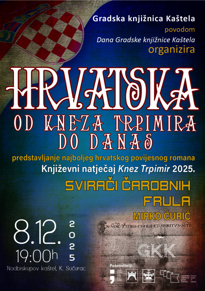 Povodom obilježavanja Dana Gradske knjižnice Kaštela u ponedjeljak 8. prosinca u 19.00 u Nadbiskupovom kaštelu u Kaštel Sućurcu GKK organizira večer Od kneza Trpimira do danas uz predstavljanje romana Svirači čarobnih frula autora Mirka Ćurića.