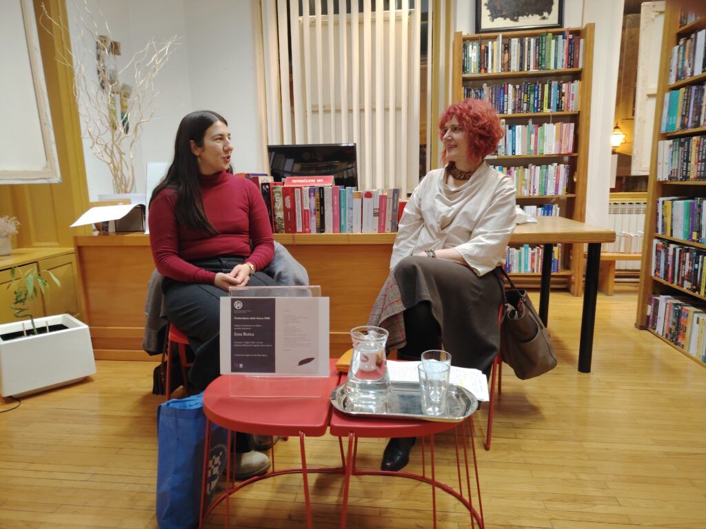 Mlada Ema Botica gostovala je na tribini DHK u četvrtak, 5. veljače u Knjižnici M. J. Zagorke i ugodno iznenadila publiku svojim živahnim nastupom. Doletjela je iz Poljske (iz Poznanja) gdje radi kao lektorica, a inače je predavačica na Filozofskom fakultetu u Splitu. Botica je govorila o svojoj poeziji koju je i čitala, o svojoj prozi u duhu fantastike, o C. S. Lewisu kojim se posebno bavi, o omiljenim pjesnicima Cesariću i Šopu… Ema Botica nedavno je uvrštena u antologiju pjesništva književnica iz područja Dalmacije „Jadranskih sirena zov“ (prir. dr. sc. Hrvojka Mihanović-Salopek i prof. dr. sc. Gordana Laco).