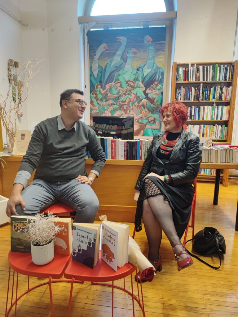 Tomislav Šovagović, plodni i nagrađivani književnik, novinar i teolog, gostovao je u četvrtak, 2. listopada na tribini DHK, koja je zbog radova održana u Knjižnici Marije J. Zagorke. U komornom ozračju tribina je bila živahna, prvenstveno zbog autorovih zanimljivih opisa šibenskog i slavonskog zavičaja (jer je dijete iz “miješanog” braka). Ta su dva kulturološka kruga često povezana u njegovoj prozi u kojoj se pojavljuju raznovrsni likovi što propitkuju različite identitete, uvjetovane zavičajem, krajolikom, odlascima i raznim međuosnosima. Odrastanje u Šibeniku, odlazak ljeti u Slavoniju, dolazak na školovanje u Zagreb, oživljavanje društvenog konteksta sedamdesetih i osamdesetih (stari brojčanici, rock kultura, kvartovske trgovine, kondukteri u tramvajima itd.) samo su neke slike koje autor opisuje kako nam ne bi iskliznule iz vremena. Čest je ‘gost’ u njegovim knjigama Fabijan Šovagović, stric autorova oca, koji se provlači kroz mnoge knjige i koji, kaže Šovagović, nikada nije htio govoriti o svojim ulogama – radije je zborio o sudbini “maloga” čovjeka, o poljoprivredi, stolarstvu, stajama… Otkrili smo i “drugog” Fabijana, onkraj platna.